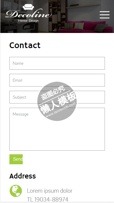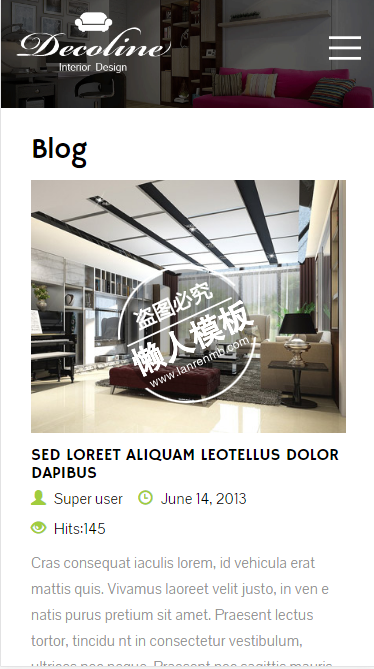 模板简介:该模板名称为【Decoline新服务html5手机wap家居设计家具网站模板免费下载】,大小是,文档格式为.,推荐使用打开,作品中的图片,文字等数据均可修改,图片请在作品中选中图片替换即可,文字修改直接点击文字修改即可,您也可以新增或修改作品中的内容,该模板来自用户分享,如有侵权行为请联系网站客服处理。欢迎来懒人模板【家居】栏目查找您需要的精美模板。
