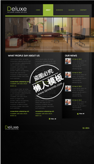 模板简介:该模板名称为【Deluxe黑色风格html5手机wap家居设计家具网站模板免费下载】,大小是,文档格式为.,推荐使用打开,作品中的图片,文字等数据均可修改,图片请在作品中选中图片替换即可,文字修改直接点击文字修改即可,您也可以新增或修改作品中的内容,该模板来自用户分享,如有侵权行为请联系网站客服处理。欢迎来懒人模板【家居】栏目查找您需要的精美模板。