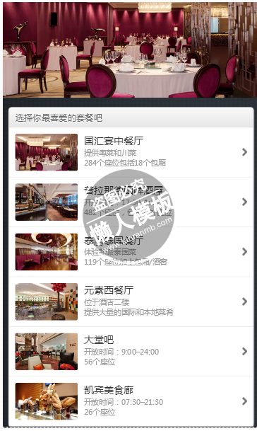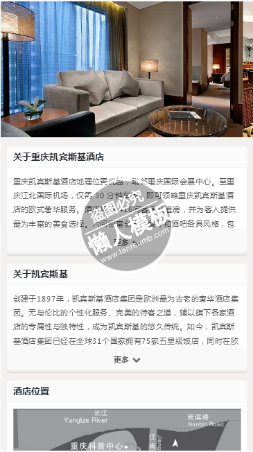 模板简介:该模板名称为【重庆凯宾斯基酒店触屏版手机wap酒店网页网站模板免费下载】,大小是,文档格式为.,推荐使用打开,作品中的图片,文字等数据均可修改,图片请在作品中选中图片替换即可,文字修改直接点击文字修改即可,您也可以新增或修改作品中的内容,该模板来自用户分享,如有侵权行为请联系网站客服处理。欢迎来懒人模板【酒店】栏目查找您需要的精美模板。