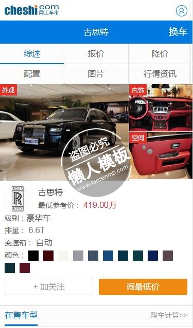 模板简介:该模板名称为【网上车市豪车触屏版自适应手机wap汽车网站模板下载】,大小是,文档格式为.,推荐使用打开,作品中的图片,文字等数据均可修改,图片请在作品中选中图片替换即可,文字修改直接点击文字修改即可,您也可以新增或修改作品中的内容,该模板来自用户分享,如有侵权行为请联系网站客服处理。欢迎来懒人模板【汽车】栏目查找您需要的精美模板。