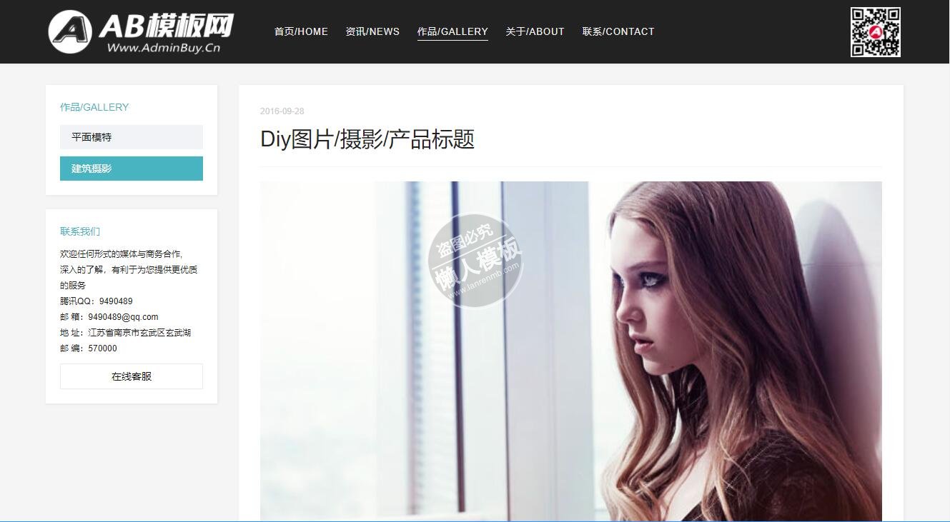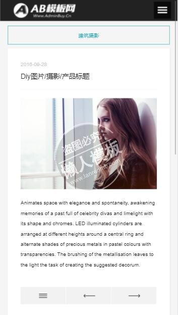 模板简介:该模板名称为【个人摄影服装广告设计整站带织梦后台pc手机双网站源码下载】,大小是,文档格式为.,推荐使用打开,作品中的图片,文字等数据均可修改,图片请在作品中选中图片替换即可,文字修改直接点击文字修改即可,您也可以新增或修改作品中的内容,该模板来自用户分享,如有侵权行为请联系网站客服处理。欢迎来懒人模板【摄影】栏目查找您需要的精美模板。