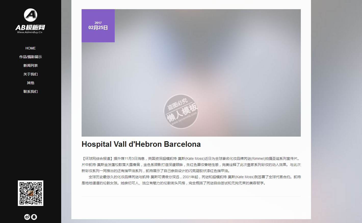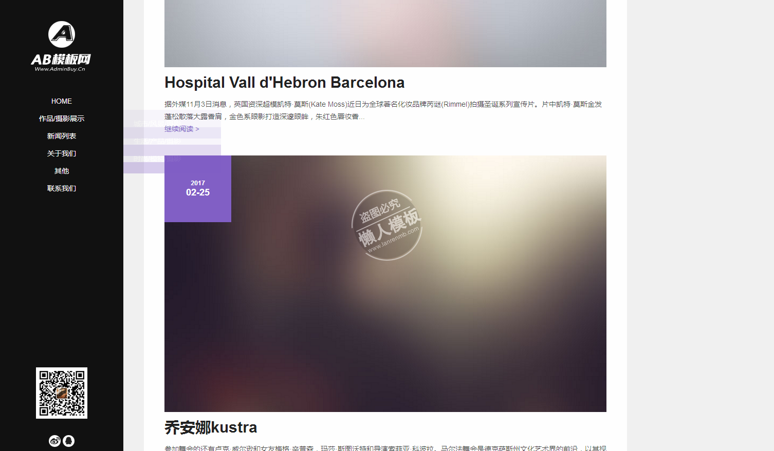 模板简介:该模板名称为【欧美风格户外摄影类网站整站带织梦后台pc手机双网站源码下载】,大小是,文档格式为.,推荐使用打开,作品中的图片,文字等数据均可修改,图片请在作品中选中图片替换即可,文字修改直接点击文字修改即可,您也可以新增或修改作品中的内容,该模板来自用户分享,如有侵权行为请联系网站客服处理。欢迎来懒人模板【摄影】栏目查找您需要的精美模板。