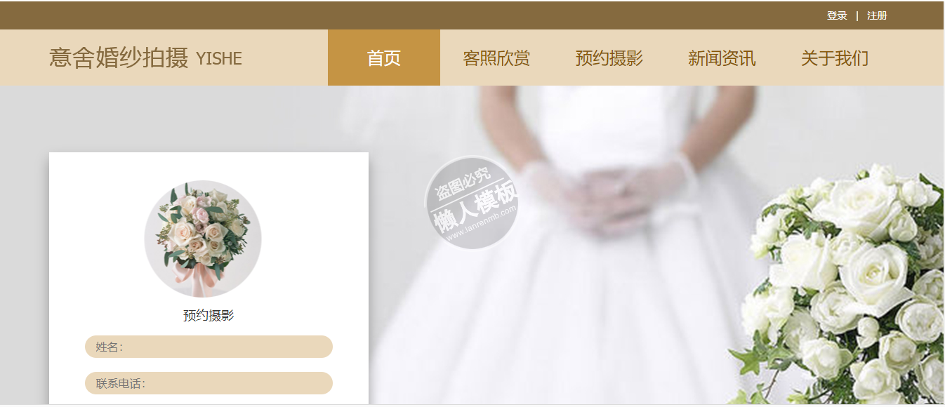 模板简介:该模板名称为【意舍婚纱摄影自适应响应式摄影网站双模板下载】,大小是,文档格式为.,推荐使用打开,作品中的图片,文字等数据均可修改,图片请在作品中选中图片替换即可,文字修改直接点击文字修改即可,您也可以新增或修改作品中的内容,该模板来自用户分享,如有侵权行为请联系网站客服处理。欢迎来懒人模板【摄影】栏目查找您需要的精美模板。