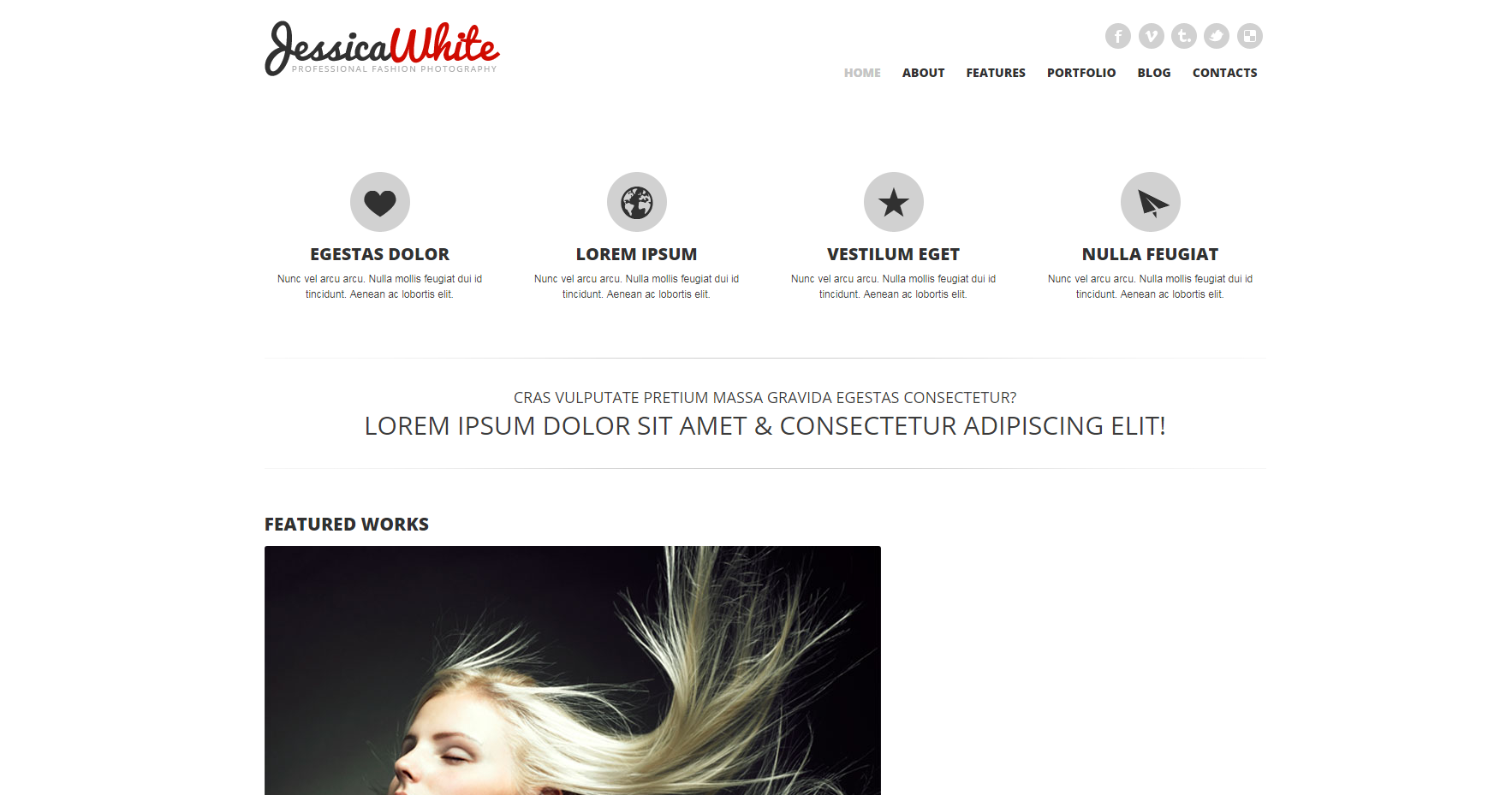 模板简介:该模板名称为【jessica-white时尚艺术摄影自适应响应式网站模板素材免费下载】,大小是,文档格式为.,推荐使用打开,作品中的图片,文字等数据均可修改,图片请在作品中选中图片替换即可,文字修改直接点击文字修改即可,您也可以新增或修改作品中的内容,该模板来自用户分享,如有侵权行为请联系网站客服处理。欢迎来懒人模板【摄影】栏目查找您需要的精美模板。