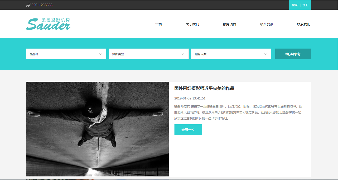 模板简介:该模板名称为【桑德摄影自适应响应式网站模板免费下载】,大小是,文档格式为.,推荐使用打开,作品中的图片,文字等数据均可修改,图片请在作品中选中图片替换即可,文字修改直接点击文字修改即可,您也可以新增或修改作品中的内容,该模板来自用户分享,如有侵权行为请联系网站客服处理。欢迎来懒人模板【摄影】栏目查找您需要的精美模板。