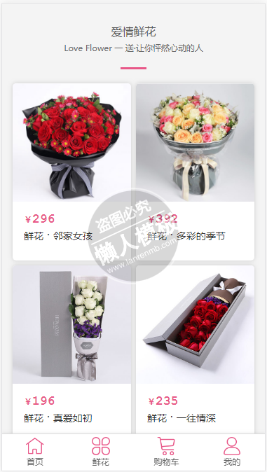 模板简介:该模板名称为【FLOWER FONG鲜花商城自适应响应式鲜花网站双模板下载】,大小是,文档格式为.,推荐使用打开,作品中的图片,文字等数据均可修改,图片请在作品中选中图片替换即可,文字修改直接点击文字修改即可,您也可以新增或修改作品中的内容,该模板来自用户分享,如有侵权行为请联系网站客服处理。欢迎来懒人模板【鲜花】栏目查找您需要的精美模板。