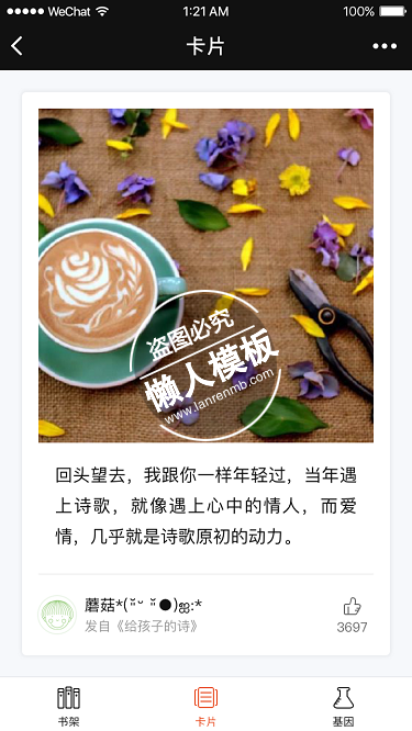 模板简介:该模板名称为【口袋书架小程序】,大小是,文档格式为.,推荐使用打开,作品中的图片,文字等数据均可修改,图片请在作品中选中图片替换即可,文字修改直接点击文字修改即可,您也可以新增或修改作品中的内容,该模板来自用户分享,如有侵权行为请联系网站客服处理。欢迎来懒人模板【工具】栏目查找您需要的精美模板。