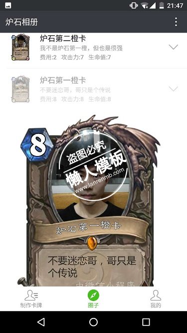 模板简介:该模板名称为【炉石相册小程序】,大小是,文档格式为.,推荐使用打开,作品中的图片,文字等数据均可修改,图片请在作品中选中图片替换即可,文字修改直接点击文字修改即可,您也可以新增或修改作品中的内容,该模板来自用户分享,如有侵权行为请联系网站客服处理。欢迎来懒人模板【工具】栏目查找您需要的精美模板。