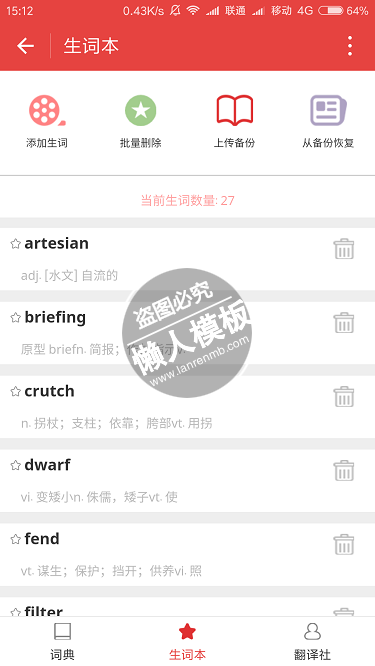 模板简介:该模板名称为【人人词典小程序】,大小是,文档格式为.,推荐使用打开,作品中的图片,文字等数据均可修改,图片请在作品中选中图片替换即可,文字修改直接点击文字修改即可,您也可以新增或修改作品中的内容,该模板来自用户分享,如有侵权行为请联系网站客服处理。欢迎来懒人模板【工具】栏目查找您需要的精美模板。