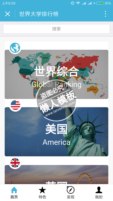 模板简介:该模板名称为【世界大学排行榜小程序】,大小是,文档格式为.,推荐使用打开,作品中的图片,文字等数据均可修改,图片请在作品中选中图片替换即可,文字修改直接点击文字修改即可,您也可以新增或修改作品中的内容,该模板来自用户分享,如有侵权行为请联系网站客服处理。欢迎来懒人模板【工具】栏目查找您需要的精美模板。