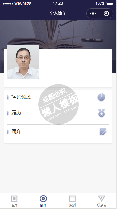 模板简介:该模板名称为【微信小程序律师个人名片demo源码下载】,大小是,文档格式为.,推荐使用打开,作品中的图片,文字等数据均可修改,图片请在作品中选中图片替换即可,文字修改直接点击文字修改即可,您也可以新增或修改作品中的内容,该模板来自用户分享,如有侵权行为请联系网站客服处理。欢迎来懒人模板【其他类别】栏目查找您需要的精美模板。