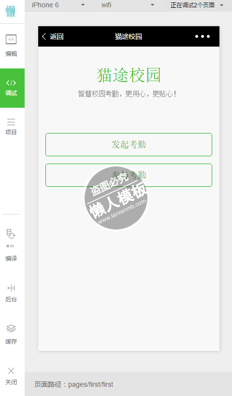 模板简介:该模板名称为【微信小程序猫途校园签到demo完整源码下载】,大小是,文档格式为.,推荐使用打开,作品中的图片,文字等数据均可修改,图片请在作品中选中图片替换即可,文字修改直接点击文字修改即可,您也可以新增或修改作品中的内容,该模板来自用户分享,如有侵权行为请联系网站客服处理。欢迎来懒人模板【其他类别】栏目查找您需要的精美模板。