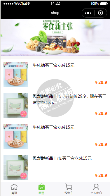 模板简介:该模板名称为【微信小程序桃酥王零食小商城demo完整源码下载】,大小是,文档格式为.,推荐使用打开,作品中的图片,文字等数据均可修改,图片请在作品中选中图片替换即可,文字修改直接点击文字修改即可,您也可以新增或修改作品中的内容,该模板来自用户分享,如有侵权行为请联系网站客服处理。欢迎来懒人模板【生活购物】栏目查找您需要的精美模板。