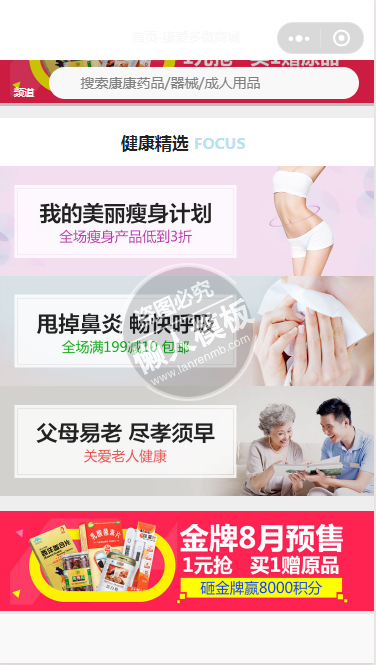 模板简介:该模板名称为【微信小程序康康网上药店demo完整源码下载】,大小是,文档格式为.,推荐使用打开,作品中的图片,文字等数据均可修改,图片请在作品中选中图片替换即可,文字修改直接点击文字修改即可,您也可以新增或修改作品中的内容,该模板来自用户分享,如有侵权行为请联系网站客服处理。欢迎来懒人模板【生活购物】栏目查找您需要的精美模板。