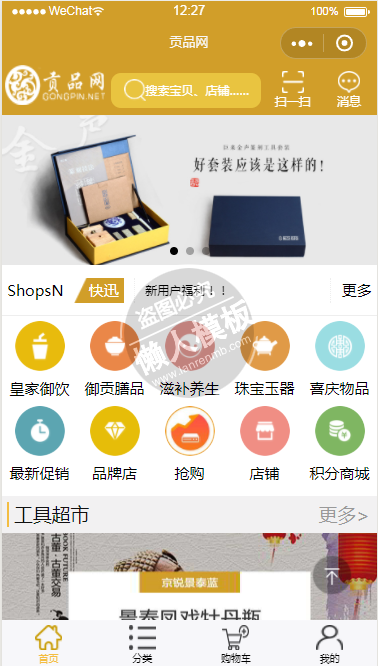 模板简介:该模板名称为【微信小程序贡品网线上商城demo完整源码下载】,大小是,文档格式为.,推荐使用打开,作品中的图片,文字等数据均可修改,图片请在作品中选中图片替换即可,文字修改直接点击文字修改即可,您也可以新增或修改作品中的内容,该模板来自用户分享,如有侵权行为请联系网站客服处理。欢迎来懒人模板【生活购物】栏目查找您需要的精美模板。