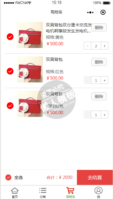 模板简介:该模板名称为【微信小程序KUMA女士箱包商城demo源码下载】,大小是,文档格式为.,推荐使用打开,作品中的图片,文字等数据均可修改,图片请在作品中选中图片替换即可,文字修改直接点击文字修改即可,您也可以新增或修改作品中的内容,该模板来自用户分享,如有侵权行为请联系网站客服处理。欢迎来懒人模板【生活购物】栏目查找您需要的精美模板。
