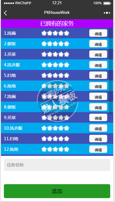 模板简介:该模板名称为【微信小程序家务活pk demo源码下载】,大小是,文档格式为.,推荐使用打开,作品中的图片,文字等数据均可修改,图片请在作品中选中图片替换即可,文字修改直接点击文字修改即可,您也可以新增或修改作品中的内容,该模板来自用户分享,如有侵权行为请联系网站客服处理。欢迎来懒人模板【生活购物】栏目查找您需要的精美模板。