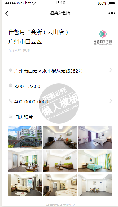 模板简介:该模板名称为【微信小程序仕馨月子会所名片demo源码下载】,大小是,文档格式为.,推荐使用打开,作品中的图片,文字等数据均可修改,图片请在作品中选中图片替换即可,文字修改直接点击文字修改即可,您也可以新增或修改作品中的内容,该模板来自用户分享,如有侵权行为请联系网站客服处理。欢迎来懒人模板【生活购物】栏目查找您需要的精美模板。
