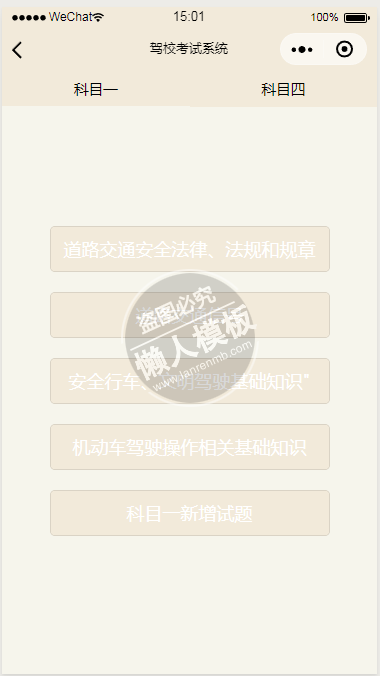 模板简介:该模板名称为【驾校考试系统微信小程序模板源码免费下载】,大小是,文档格式为.,推荐使用打开,作品中的图片,文字等数据均可修改,图片请在作品中选中图片替换即可,文字修改直接点击文字修改即可,您也可以新增或修改作品中的内容,该模板来自用户分享,如有侵权行为请联系网站客服处理。欢迎来懒人模板【生活购物】栏目查找您需要的精美模板。