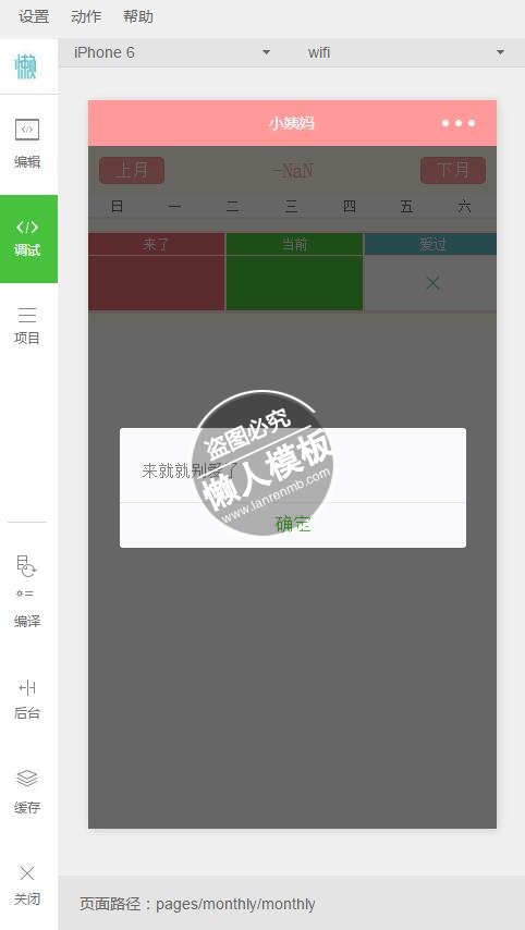 模板简介:该模板名称为【微信小程序小姨妈记录实例demo完整源码下载】,大小是,文档格式为.,推荐使用打开,作品中的图片,文字等数据均可修改,图片请在作品中选中图片替换即可,文字修改直接点击文字修改即可,您也可以新增或修改作品中的内容,该模板来自用户分享,如有侵权行为请联系网站客服处理。欢迎来懒人模板【生活购物】栏目查找您需要的精美模板。