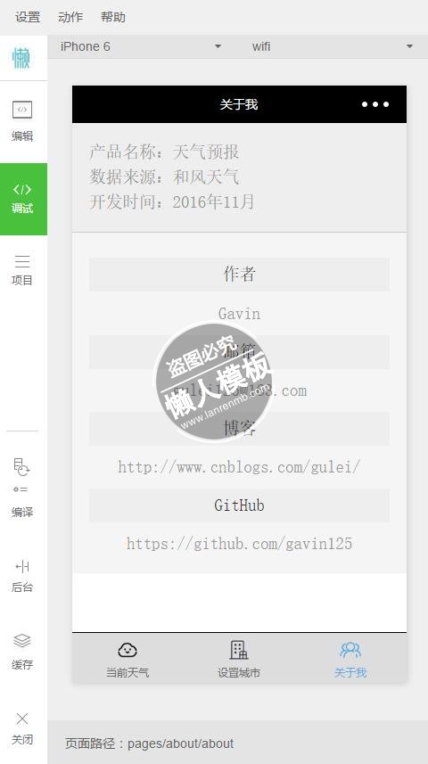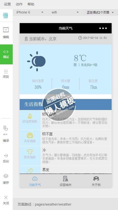 模板简介:该模板名称为【微信小程序和风天气API实例demo完整源码下载】,大小是,文档格式为.,推荐使用打开,作品中的图片,文字等数据均可修改,图片请在作品中选中图片替换即可,文字修改直接点击文字修改即可,您也可以新增或修改作品中的内容,该模板来自用户分享,如有侵权行为请联系网站客服处理。欢迎来懒人模板【生活购物】栏目查找您需要的精美模板。