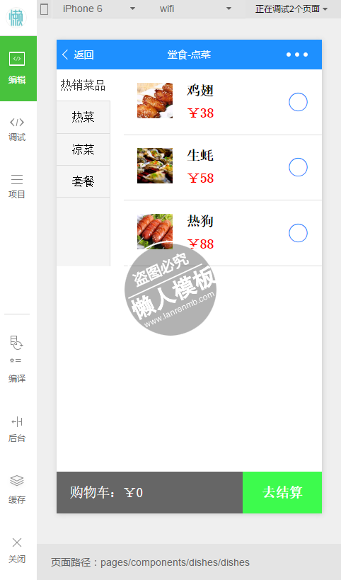 模板简介:该模板名称为【微信小程序美食汇订餐菜单demo完整源码下载】,大小是,文档格式为.,推荐使用打开,作品中的图片,文字等数据均可修改,图片请在作品中选中图片替换即可,文字修改直接点击文字修改即可,您也可以新增或修改作品中的内容,该模板来自用户分享,如有侵权行为请联系网站客服处理。欢迎来懒人模板【生活购物】栏目查找您需要的精美模板。