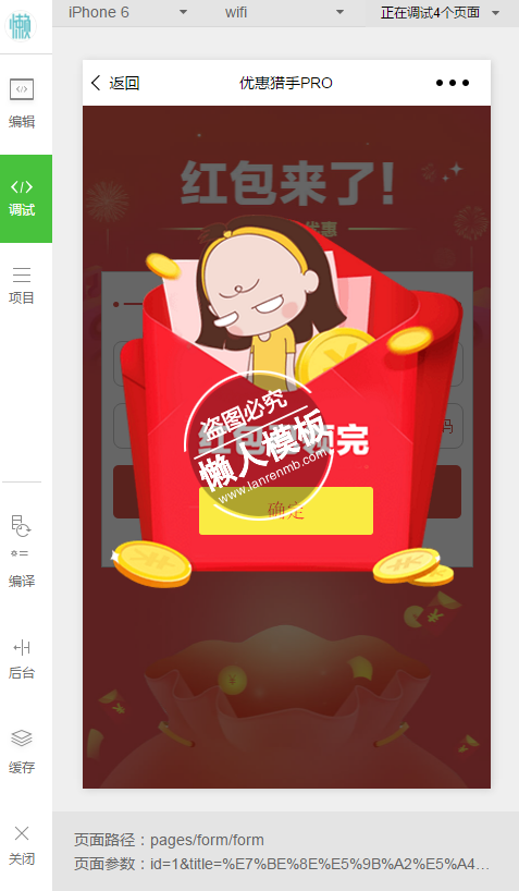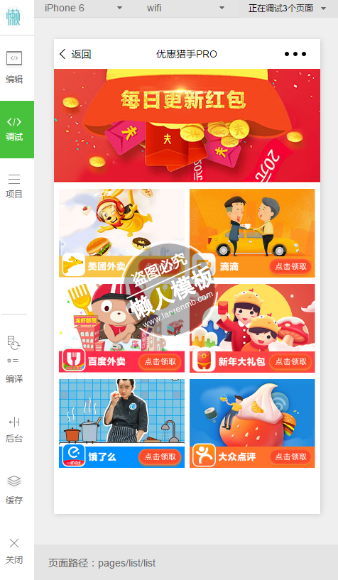 模板简介:该模板名称为【微信小程序优惠猎手pro demo完整源码下载】,大小是,文档格式为.,推荐使用打开,作品中的图片,文字等数据均可修改,图片请在作品中选中图片替换即可,文字修改直接点击文字修改即可,您也可以新增或修改作品中的内容,该模板来自用户分享,如有侵权行为请联系网站客服处理。欢迎来懒人模板【生活购物】栏目查找您需要的精美模板。