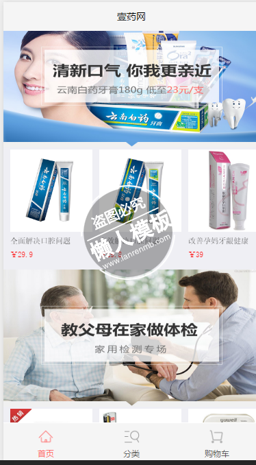 模板简介:该模板名称为【微信小程序壹药网健康系列demo完整源码下载】,大小是,文档格式为.,推荐使用打开,作品中的图片,文字等数据均可修改,图片请在作品中选中图片替换即可,文字修改直接点击文字修改即可,您也可以新增或修改作品中的内容,该模板来自用户分享,如有侵权行为请联系网站客服处理。欢迎来懒人模板【生活购物】栏目查找您需要的精美模板。