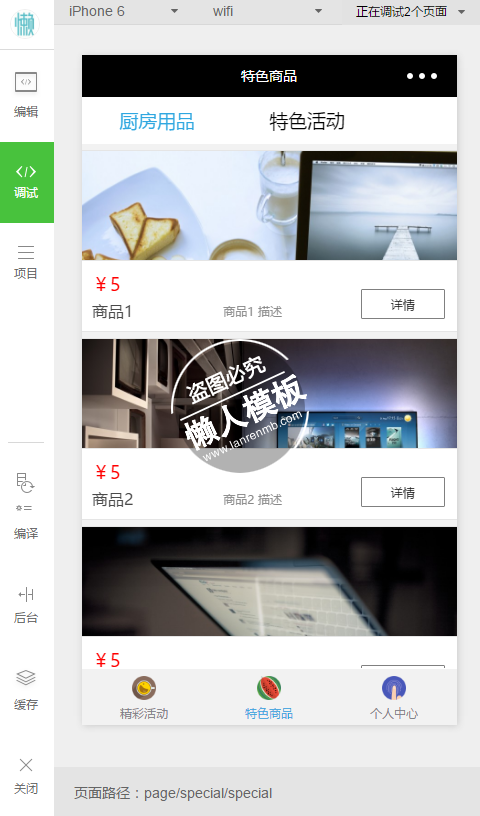 模板简介:该模板名称为【微信小程序特色商品精彩活动demo完整源码下载】,大小是,文档格式为.,推荐使用打开,作品中的图片,文字等数据均可修改,图片请在作品中选中图片替换即可,文字修改直接点击文字修改即可,您也可以新增或修改作品中的内容,该模板来自用户分享,如有侵权行为请联系网站客服处理。欢迎来懒人模板【生活购物】栏目查找您需要的精美模板。