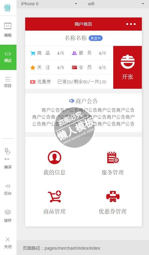 模板简介:该模板名称为【微信小程序商户客户角色切换demo完整源码下载】,大小是,文档格式为.,推荐使用打开,作品中的图片,文字等数据均可修改,图片请在作品中选中图片替换即可,文字修改直接点击文字修改即可,您也可以新增或修改作品中的内容,该模板来自用户分享,如有侵权行为请联系网站客服处理。欢迎来懒人模板【生活购物】栏目查找您需要的精美模板。