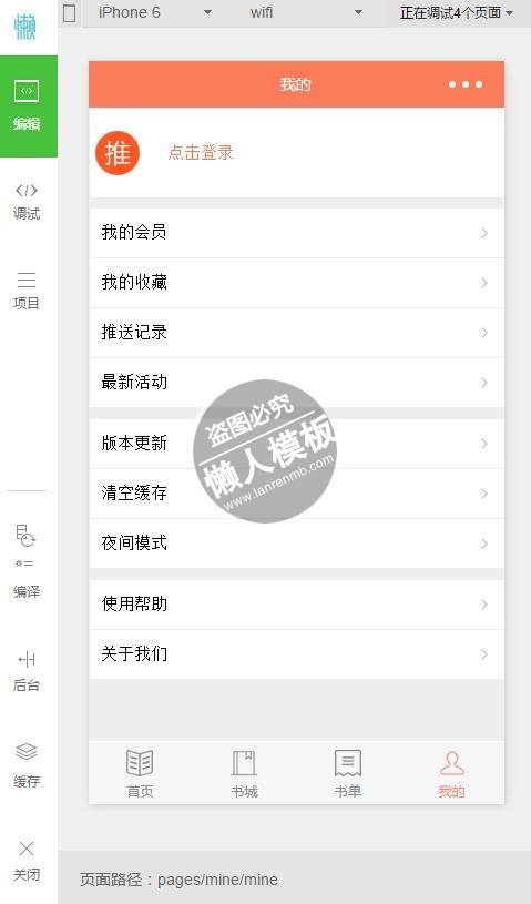 模板简介:该模板名称为【微信小程序kindle push图书商城demo完整源码下载】,大小是,文档格式为.,推荐使用打开,作品中的图片,文字等数据均可修改,图片请在作品中选中图片替换即可,文字修改直接点击文字修改即可,您也可以新增或修改作品中的内容,该模板来自用户分享,如有侵权行为请联系网站客服处理。欢迎来懒人模板【生活购物】栏目查找您需要的精美模板。