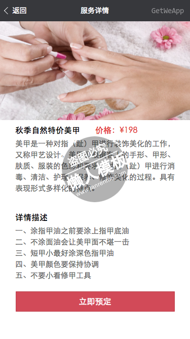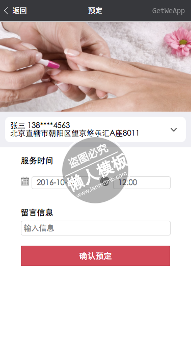 模板简介:该模板名称为【微信小程序美容美甲美发商城产品demo完整源码下载】,大小是,文档格式为.,推荐使用打开,作品中的图片,文字等数据均可修改,图片请在作品中选中图片替换即可,文字修改直接点击文字修改即可,您也可以新增或修改作品中的内容,该模板来自用户分享,如有侵权行为请联系网站客服处理。欢迎来懒人模板【生活购物】栏目查找您需要的精美模板。
