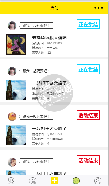 模板简介:该模板名称为【微信小程序躁动活动号召demo源码下载】,大小是,文档格式为.,推荐使用打开,作品中的图片,文字等数据均可修改,图片请在作品中选中图片替换即可,文字修改直接点击文字修改即可,您也可以新增或修改作品中的内容,该模板来自用户分享,如有侵权行为请联系网站客服处理。欢迎来懒人模板【社区交友】栏目查找您需要的精美模板。