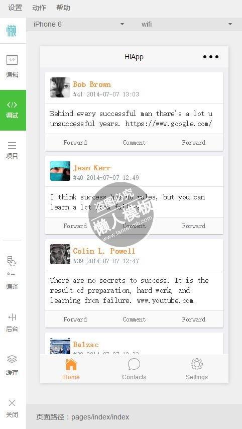 模板简介:该模板名称为【微信小程序国外hi建议小程序实例demo完整源码下载】,大小是,文档格式为.,推荐使用打开,作品中的图片,文字等数据均可修改,图片请在作品中选中图片替换即可,文字修改直接点击文字修改即可,您也可以新增或修改作品中的内容,该模板来自用户分享,如有侵权行为请联系网站客服处理。欢迎来懒人模板【社区交友】栏目查找您需要的精美模板。