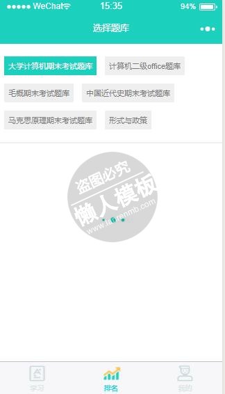 模板简介:该模板名称为【微信小程序绿色学习考试题库测试demo完整源码下载】,大小是,文档格式为.,推荐使用打开,作品中的图片,文字等数据均可修改,图片请在作品中选中图片替换即可,文字修改直接点击文字修改即可,您也可以新增或修改作品中的内容,该模板来自用户分享,如有侵权行为请联系网站客服处理。欢迎来懒人模板【文化教育】栏目查找您需要的精美模板。