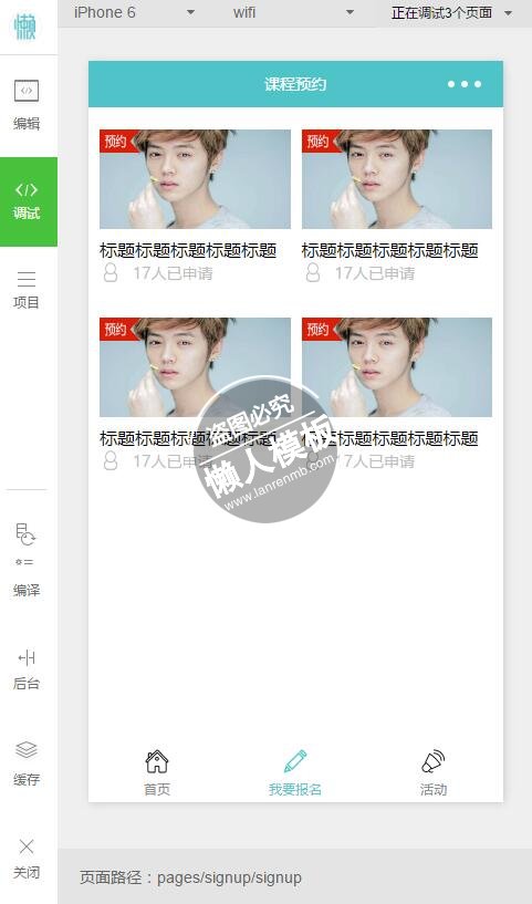 模板简介:该模板名称为【微信小程序浅色风格课程预约教育类demo完整源码下载】,大小是,文档格式为.,推荐使用打开,作品中的图片,文字等数据均可修改,图片请在作品中选中图片替换即可,文字修改直接点击文字修改即可,您也可以新增或修改作品中的内容,该模板来自用户分享,如有侵权行为请联系网站客服处理。欢迎来懒人模板【文化教育】栏目查找您需要的精美模板。