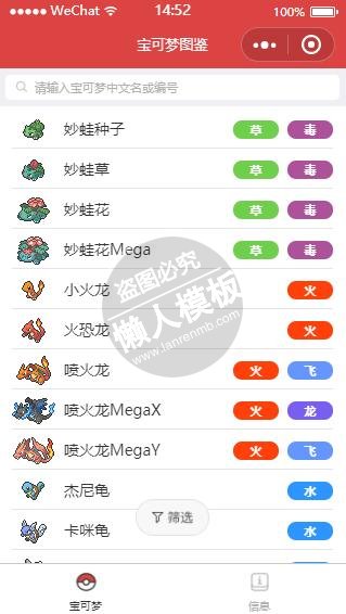 模板简介:该模板名称为【微信小程序宝可梦图鉴小游戏demo完整源码下载】,大小是,文档格式为.,推荐使用打开,作品中的图片,文字等数据均可修改,图片请在作品中选中图片替换即可,文字修改直接点击文字修改即可,您也可以新增或修改作品中的内容,该模板来自用户分享,如有侵权行为请联系网站客服处理。欢迎来懒人模板【影音娱乐】栏目查找您需要的精美模板。