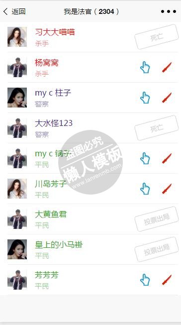 模板简介:该模板名称为【微信小程序谁是杀手小游戏demo完整源码下载】,大小是,文档格式为.,推荐使用打开,作品中的图片,文字等数据均可修改,图片请在作品中选中图片替换即可,文字修改直接点击文字修改即可,您也可以新增或修改作品中的内容,该模板来自用户分享,如有侵权行为请联系网站客服处理。欢迎来懒人模板【影音娱乐】栏目查找您需要的精美模板。