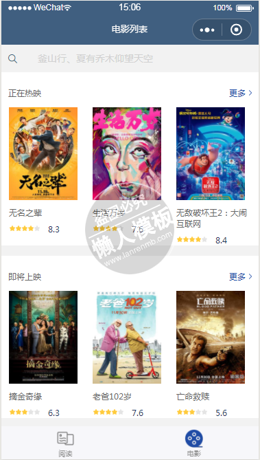 模板简介:该模板名称为【微信小程序电影一览demo完整源码下载】,大小是,文档格式为.,推荐使用打开,作品中的图片,文字等数据均可修改,图片请在作品中选中图片替换即可,文字修改直接点击文字修改即可,您也可以新增或修改作品中的内容,该模板来自用户分享,如有侵权行为请联系网站客服处理。欢迎来懒人模板【影音娱乐】栏目查找您需要的精美模板。
