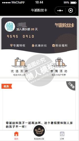 模板简介:该模板名称为【微信小程序午逅粉丝卡俱乐部demo完整源码下载】,大小是,文档格式为.,推荐使用打开,作品中的图片,文字等数据均可修改,图片请在作品中选中图片替换即可,文字修改直接点击文字修改即可,您也可以新增或修改作品中的内容,该模板来自用户分享,如有侵权行为请联系网站客服处理。欢迎来懒人模板【影音娱乐】栏目查找您需要的精美模板。