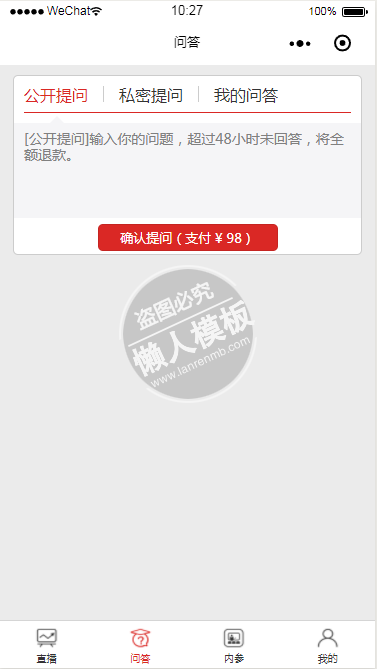 模板简介:该模板名称为【微信小程序问答直播间demo完整源码下载】,大小是,文档格式为.,推荐使用打开,作品中的图片,文字等数据均可修改,图片请在作品中选中图片替换即可,文字修改直接点击文字修改即可,您也可以新增或修改作品中的内容,该模板来自用户分享,如有侵权行为请联系网站客服处理。欢迎来懒人模板【影音娱乐】栏目查找您需要的精美模板。