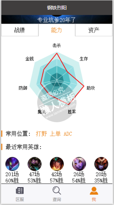 模板简介:该模板名称为【微信小程序英雄联盟战绩demo源码下载】,大小是,文档格式为.,推荐使用打开,作品中的图片,文字等数据均可修改,图片请在作品中选中图片替换即可,文字修改直接点击文字修改即可,您也可以新增或修改作品中的内容,该模板来自用户分享,如有侵权行为请联系网站客服处理。欢迎来懒人模板【影音娱乐】栏目查找您需要的精美模板。