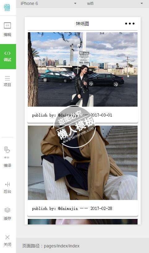 模板简介:该模板名称为【微信小程序妹子图片浏览demo完整源码下载】,大小是,文档格式为.,推荐使用打开,作品中的图片,文字等数据均可修改,图片请在作品中选中图片替换即可,文字修改直接点击文字修改即可,您也可以新增或修改作品中的内容,该模板来自用户分享,如有侵权行为请联系网站客服处理。欢迎来懒人模板【影音娱乐】栏目查找您需要的精美模板。