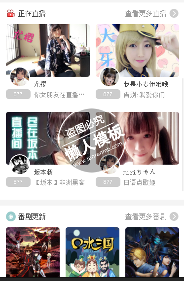 模板简介:该模板名称为【微信小程序b站首页界面设计demo完整源码下载】,大小是,文档格式为.,推荐使用打开,作品中的图片,文字等数据均可修改,图片请在作品中选中图片替换即可,文字修改直接点击文字修改即可,您也可以新增或修改作品中的内容,该模板来自用户分享,如有侵权行为请联系网站客服处理。欢迎来懒人模板【影音娱乐】栏目查找您需要的精美模板。