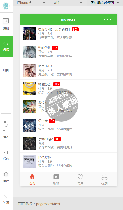 模板简介:该模板名称为【微信小程序电影列表页展示demo完整源码下载】,大小是,文档格式为.,推荐使用打开,作品中的图片,文字等数据均可修改,图片请在作品中选中图片替换即可,文字修改直接点击文字修改即可,您也可以新增或修改作品中的内容,该模板来自用户分享,如有侵权行为请联系网站客服处理。欢迎来懒人模板【影音娱乐】栏目查找您需要的精美模板。
