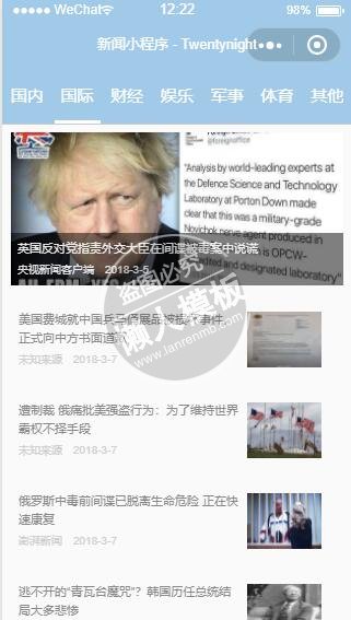 模板简介:该模板名称为【微信小程序浅蓝风格综合新闻资讯阅读demo完整源码下载】,大小是,文档格式为.,推荐使用打开,作品中的图片,文字等数据均可修改,图片请在作品中选中图片替换即可,文字修改直接点击文字修改即可,您也可以新增或修改作品中的内容,该模板来自用户分享,如有侵权行为请联系网站客服处理。欢迎来懒人模板【资讯阅读】栏目查找您需要的精美模板。