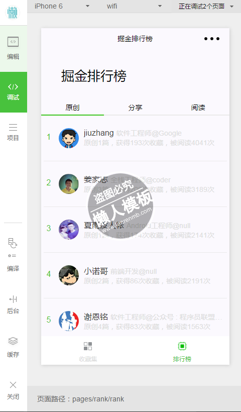 模板简介:该模板名称为【微信小程序掘金收藏集简单示例demo完整源码下载】,大小是,文档格式为.,推荐使用打开,作品中的图片,文字等数据均可修改,图片请在作品中选中图片替换即可,文字修改直接点击文字修改即可,您也可以新增或修改作品中的内容,该模板来自用户分享,如有侵权行为请联系网站客服处理。欢迎来懒人模板【资讯阅读】栏目查找您需要的精美模板。