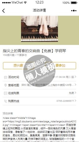 模板简介:该模板名称为【微信小程序豆瓣同城分类信息demo完整源码下载】,大小是,文档格式为.,推荐使用打开,作品中的图片,文字等数据均可修改,图片请在作品中选中图片替换即可,文字修改直接点击文字修改即可,您也可以新增或修改作品中的内容,该模板来自用户分享,如有侵权行为请联系网站客服处理。欢迎来懒人模板【资讯阅读】栏目查找您需要的精美模板。
