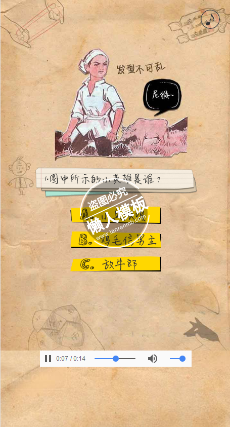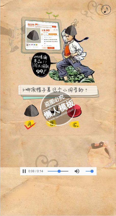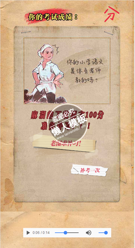 模板简介:该模板名称为【html5手机移动端在线答题类含插件源码下载】,大小是,文档格式为.,推荐使用打开,作品中的图片,文字等数据均可修改,图片请在作品中选中图片替换即可,文字修改直接点击文字修改即可,您也可以新增或修改作品中的内容,该模板来自用户分享,如有侵权行为请联系网站客服处理。欢迎来懒人模板【娱乐休闲】栏目查找您需要的精美模板。