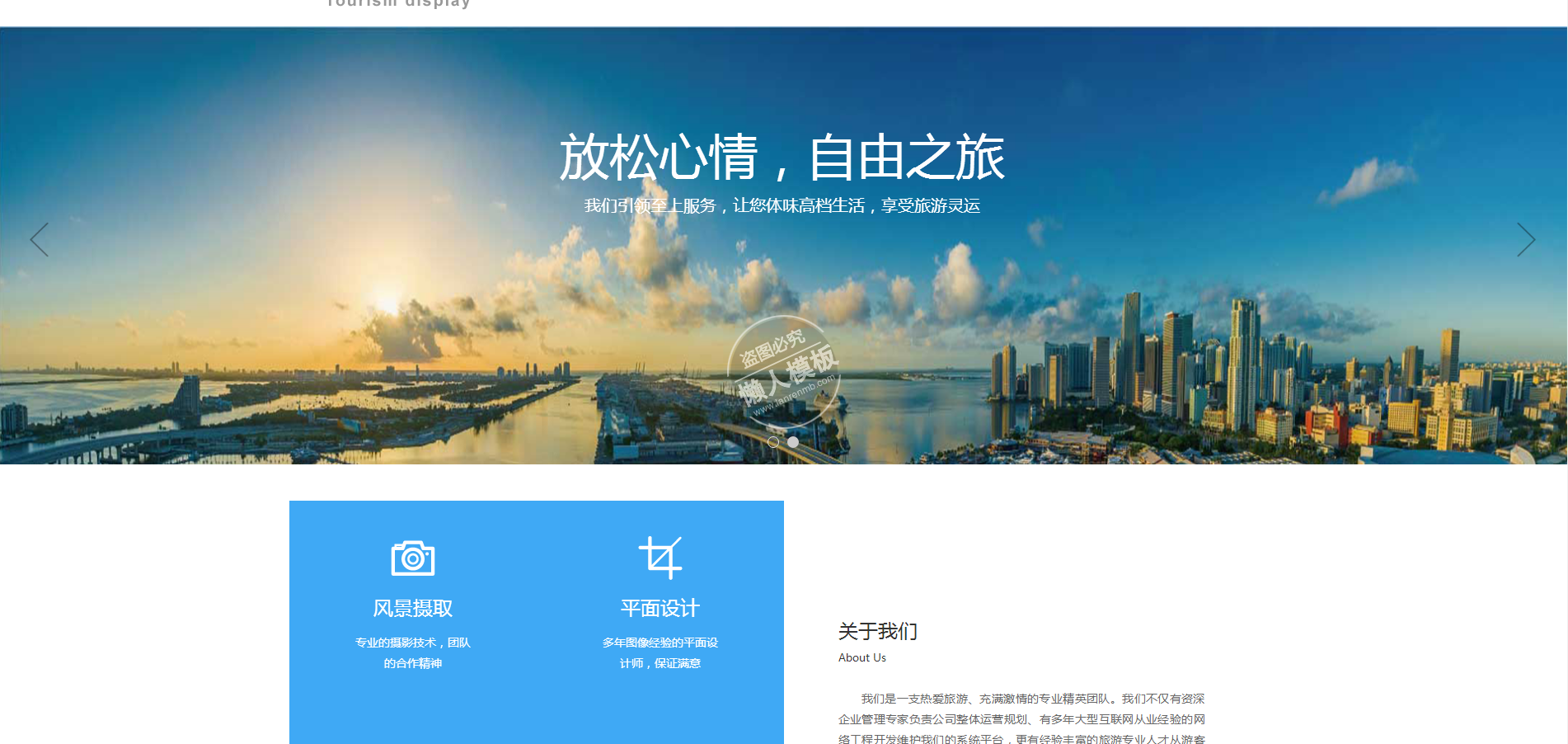 模板简介:该模板名称为【自由之旅手机PC端自适应响应式html5旅游网站双模板下载】,大小是,文档格式为.,推荐使用打开,作品中的图片,文字等数据均可修改,图片请在作品中选中图片替换即可,文字修改直接点击文字修改即可,您也可以新增或修改作品中的内容,该模板来自用户分享,如有侵权行为请联系网站客服处理。欢迎来懒人模板【旅游】栏目查找您需要的精美模板。